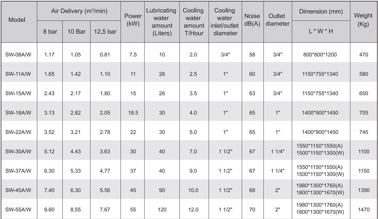 Water is used for lubrication, cooling, sealing and noise reduction. 100% oil-free and pollution-free,