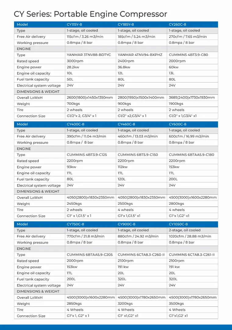 Trouble-free operation in ambient temperatures ranging from -20°C to +45°C. Versatility is further enhanced by the chassis, which can be equipped with a fixed or height adjustable tow bar and with or without an overrun brake. Stationary versions can be installed either on skids or machine mounts.